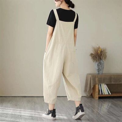 サロペット レディース ゆったり 春 夏 オールインワン つなぎ オーバーオール 大人サロペット サロペットパンツ パンツ ロング 綿 コットン 涼しい カジュアル 楽ちん 無地 ポケット付き 高見え