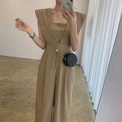 オールインワン サロペット レディース 春夏 ワイドパンツ パンツ ノースリーブ 無地 ワイド おしゃれ ゆったり 体型カバー 着?せ カジュアル 細見え シンプル ナチュラル 通勤OL リゾート マ
