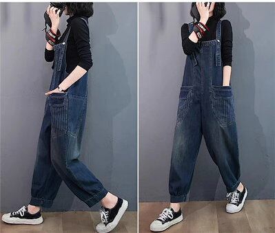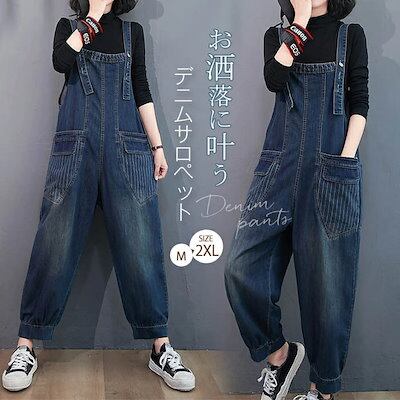 デニムサロペット レディース コーデ 春秋 サロペット デニム 大きいサイズ ワイド パンツ オーバーオール ロング 体型カバー ゆったり 楽ちん 大人 デニムワイドパンツ 春 夏 秋 無地 着痩せ