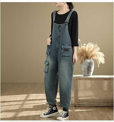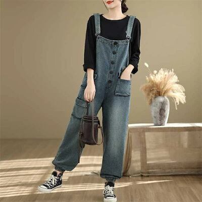 サロペット パンツ レディース 春 オールインワン ノースリーブ ワイドパンツ デニムパンツ デニムワイドパンツ デニム ロング丈 ポケット付き ゆったり 体型カバー 大きいサイズ ナチュラル カジュ