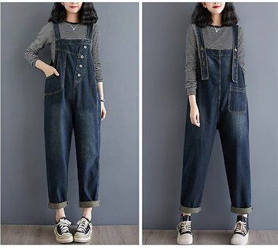 前後2Way デニムサロペット レディース コーデ 秋 サロペット デニム 大きいサイズ ワイド パンツ オーバーオール ロング 体型カバー ゆったり 楽ちん 大人 デニムワイドパンツ 春 夏 秋 無