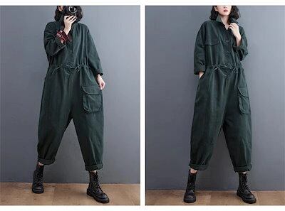 オールインワン サロペット つなぎ レディース 春 秋 大きいサイズ パンツドレス 連体服 無地 オーバーオール オールインワン 長袖 ロングパンツ マキシ丈 ツナギ 古着風 マタニティ ゆったり目