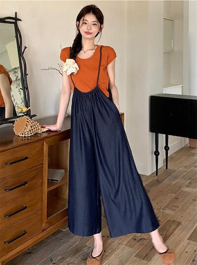 サロペット パンツ レディース 春夏 ワイドパンツ オーバーオール オールインワン 森ガール ジャンパーパンツ サロペット サスペンダー ロンパース レイヤード 重ね着 ゆったり 体型カバー 無地 大
