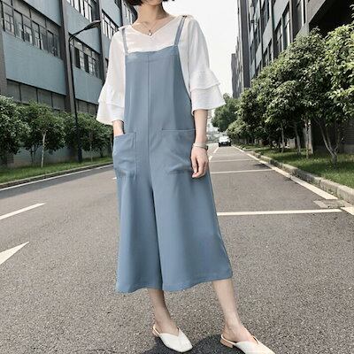 サロペット オールインワン コンビネゾン キャミソール ノースリーブ ワイドパンツ キャミワンピ レディース ボトムス シフォン ゆったり楽ちん 大きいサイズ 9分丈 ブラック ブルー春夏秋冬 M L