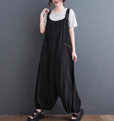 サロペット オールインワン オーバーオール バルーン ガウチョ パンツ レディース 9分丈 ロング丈 オーバサイズ ビッグシルエット ゆったり 大きめ 春 夏