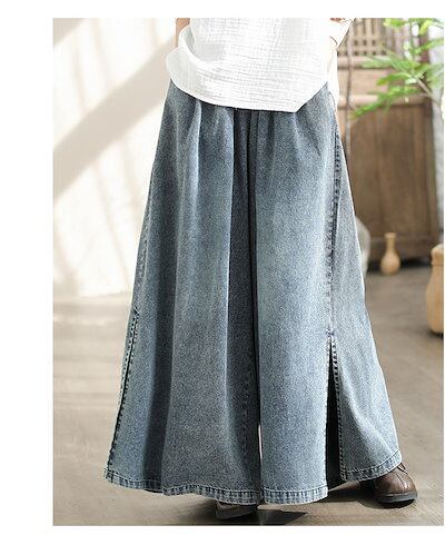 ワイドパンツ デニム デニムパンツ レディース サイドスリット パンツ ボトムス ズボン 長ズボン ロングパンツ ロング丈 ウエストゴム 大きいサイズ ゆったり ワイドデニム ジーンズ おしゃれ 春