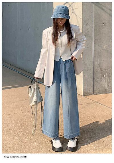 ワイドパンツ レディース ストレートパンツ デニムパンツ ワイドパンツ 春夏 ウエストゴム ロング丈 ボトムス リラックス ゆったり 楽ちん おしゃれ シンプル ポケット付き 体型カバー 着痩せ 定番