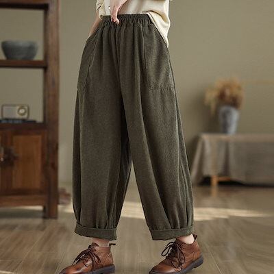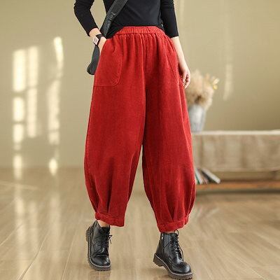 ワイドパンツ レディース バルーンパンツ コーデュロイ 秋冬 サーカスパンツ 春 ワイド ボトムス パンツ ハロンパンツ 大きいサイズ コクーン ウエストゴム ロングパンツ サルエルパンツ ポケット付 | Jeannede ジャンヌデ
