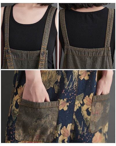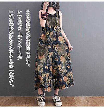 プリットサロペット パンツ デニム レディース オールインワン ワイドパンツ 春 夏 ボトムス 大きいサイズ デニムサロペット きれいめ サロペットパンツ オーバーオール デニムパンツ ワイド 花柄 プリット | Jeannede ジャンヌデ