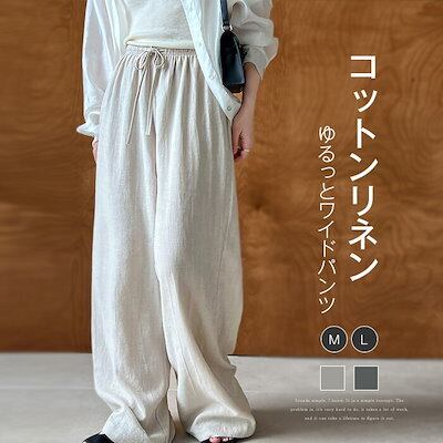 ワイドパンツ レディース ロング丈 綿 麻 リネン コットン 秋 春 夏 スカンツ ガウチョパンツ 体型カバー おしゃれ ゆったり ナチュラル 着痩せ 無地 ゆる 大きいサイズ 薄手 上品 ワイドシル