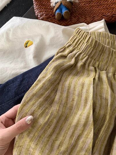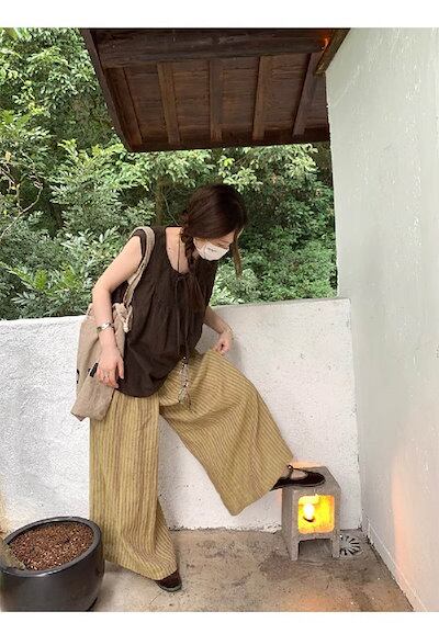 ワイドパンツ レディース ロング丈 ストライプ柄 綿麻 リネン 秋 春 夏 スカンツ ガウチョパンツ 体型カバー おしゃれ ゆったり ナチュラル カジュアル 着痩せ ボトムス ゆる 大きいサイズ ワイ