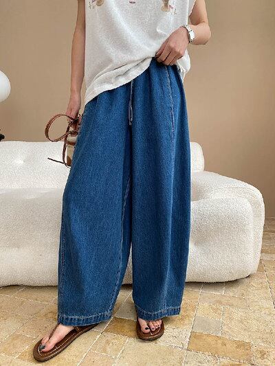 サルエルパンツ デニム レディース 春 秋 ワイドパンツ ロング丈 デニム パンツ 華奢見え 体型カバー おしゃれ ゆったり カジュアル ナチュラルカジュアル 着痩せ ボトムス ゆる 大きいサイズ