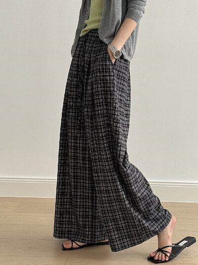 ワイドパンツ レディース チェック柄 春 秋 スカーチョ スカンツ ロング丈 体型カバー おしゃれ ゆったり カジュアル ナチュラル 着痩せ ボトムス 春物 春 秋 ゆる 大きいサイズ ワイドシルエッ