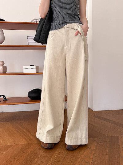 ワイドパンツ デニム レディース 春 秋 ロング丈 デニム パンツ 華奢見え 体型カバー おしゃれ 上品 ゆったり カジュアル ナチュラルカジュアル 着痩せ ボトムス ゆる 大きいサイズ トレンド
