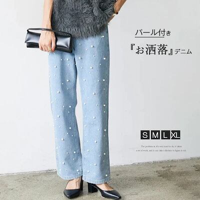 ワイドパンツ デニム レディース 春 秋 パール付き ガウチョパンツ ワイドデニム デニムパンツ 体型カバー ジーンズ ハイウェスト 薄手 デニム 華奢見え おしゃれ ゆったり カジュアル ナチュラル