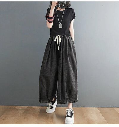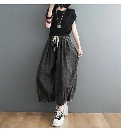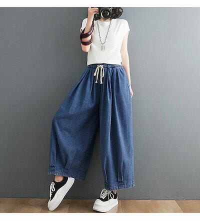 デニムワイドパンツ レディース バルーンパンツ デニム コクーンパンツ デニム ボトムス パンツ ジーンズ 大人カジュアル 春夏 ナチュラル 森ガール ズボン ウエストゴム 大きいサイズ ゆったり
