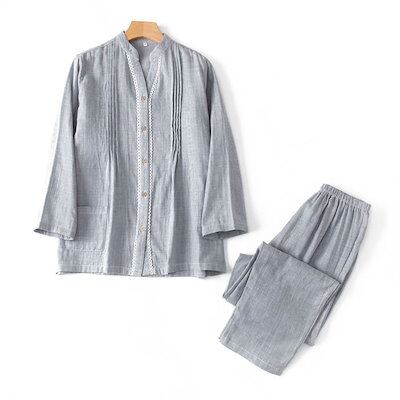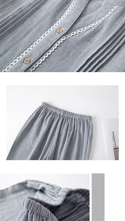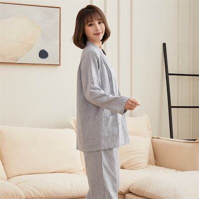 ガーゼ パジャマ レディース ルームウェア パンツ 春 秋 ガーゼコットン vネック 春秋 長袖 ダブルガーゼ 2重ガーゼ 綿 部屋着 セットアップ 2点セット ナイト 寝間着 寝巻き 上下セット 前
