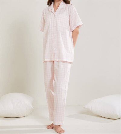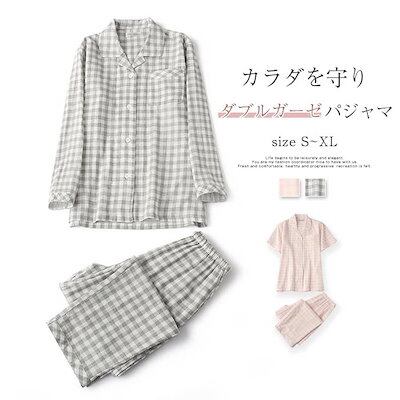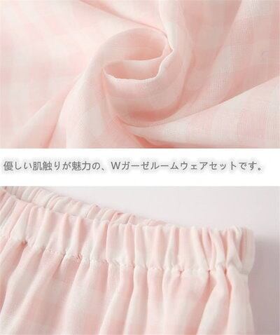 チェック ガーゼ パジャマ レディース ダブルガーゼ ドット ルームウェア 春 夏 秋 冬 長袖 半袖 ロングパンツ 部屋着 セットアップ 2点セット 寝間着 寝巻き 上下セット 前開き 大きいサイズ