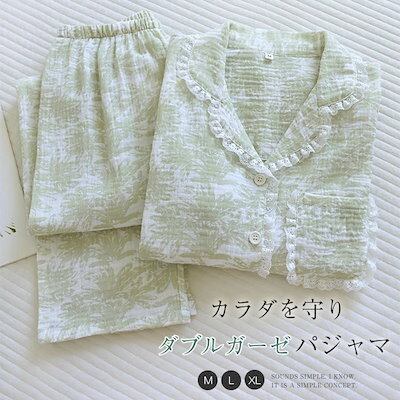 ガーゼ パジャマ レディース 花柄 総柄 ルームウェア 春 秋 冬 長袖 ロングパンツ 部屋着 セットアップ 2点セット 寝間着 寝巻き 上下セット 前開き 大きいサイズ 大人 レース フェミニン 折
