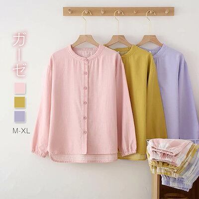 ガーゼ パジャマ レディース ガーゼコットン ルームウェア パンツ 春 秋 春秋 切り替え 長袖 ダブルガーゼ 2重ガーゼ チェック 綿 部屋着 セットアップ 2点セット ナイト 寝間着 寝巻き 上下