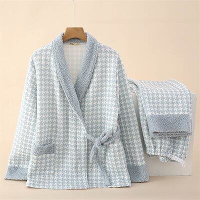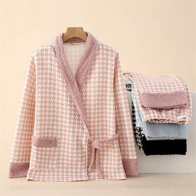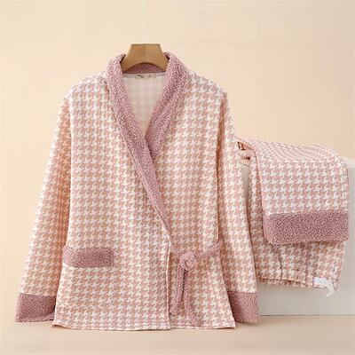 パジャマ レディース ルームウェア パンツ 秋 冬 コットン 千鳥柄 厚手 パジャマ レディース 春 秋冬 綿 切り替え 長袖 2点セット ナイト 寝間着 寝巻き 上下セット 前開き 快適 大人 コッ