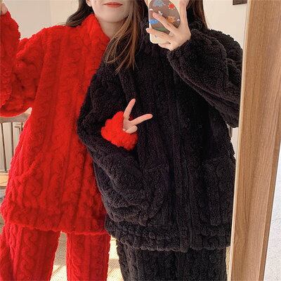 もこもこ パジャマ レディース ルームウェア パンツ 秋冬 ベロアパジャマ ベロア 厚手 春 秋冬 切り替え 長袖 2点セット ナイト 寝間着 寝巻き 上下セット 前開き 寒さ対策 快適 ゆる 大人