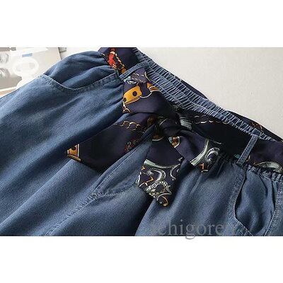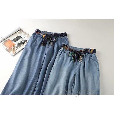 人気デニム ワイドパンツ レディース UVカット 冷感素材 接触冷感 デニムジーンズ ガウチョパンツ スカーチョ ゆるパンツ ボトムス ひんやり 無地 着痩せ 美脚 通勤