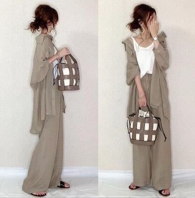 2点セット セットアップ レディース 春夏 長袖シャツ ガウチョパンツ 着痩せ 体型カバー 通勤オシャレセットアップ