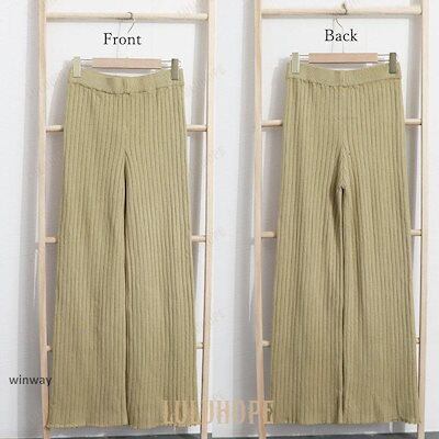 ワイドパンツ レディース 秋 冬 ニットパンツ リブニット パンツ ロングパンツ 無地 リブ ボトムス 大人 ガウチョパンツ ゆったり 40代 OL ママ OL あす楽