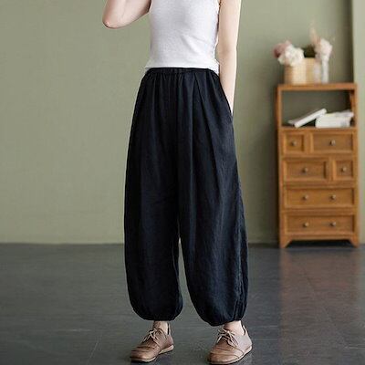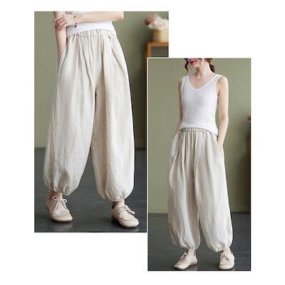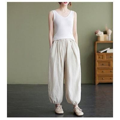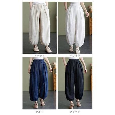 バルーンパンツ 綿麻 レディース ガウチョパンツ ウエストゴム リネン パンツ ワイド 大人カジュアル 春 夏 ナチュラル 森ガール ズボン