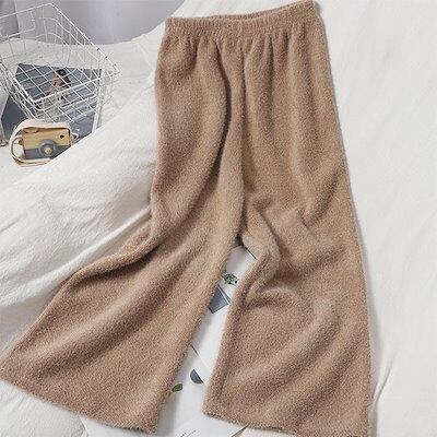 ワイドパンツ 春 秋 モコモコ レディース ガウチョ ゆったり ニットパンツ 厚手 ロングパンツ 秋冬 パンツ ウエストゴム 着痩せ ストレートパンツ