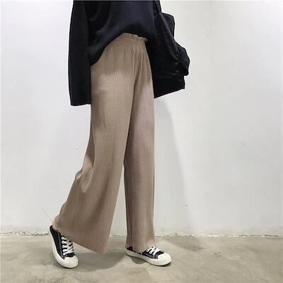 韓国ファッション ロングスラックスパンツ 着痩せロングパンツ 伸縮性のあるウエスト ストレート ガウチョパンツ スラックスパンツ