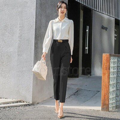 新品登場 スラックス ロング丈 スーツパンツ 通勤 オフィス OL 女性 美脚 テーパードパンツ ハイウエスト レディースボトム ビジネス フォーマル チノパン