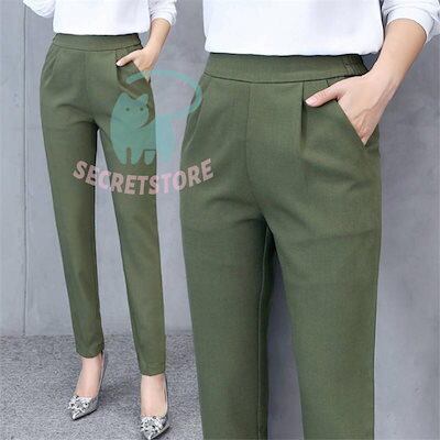 新品(タイムセール)テーパードパンツ パンツ レディース ボ ハイウエスト 九分丈 ウエストゴム 体型カバー 楽ちん 伸びる 伸縮性あり ズボン