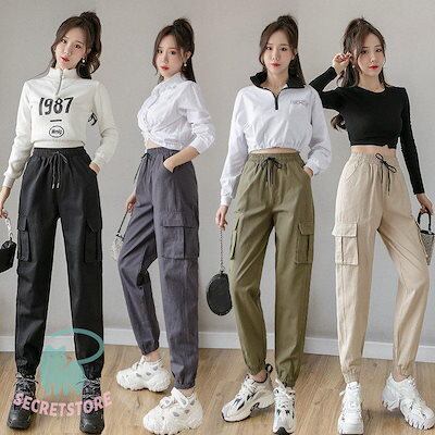 新品(タイムセール)カーゴパンツ レディース ワークパンツ ポケット 美脚 無地 ロングパンツ ボ ヒップホップ ダンス衣装 ストリート系 カジュアル 春夏秋