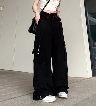 マルチポケット 着? カーゴパンツ レディース オーバーオール レディース ピンク シンプルハイウエストストレートワイドレッグパンツズボン 無地 襟無 春 夏 ファッション