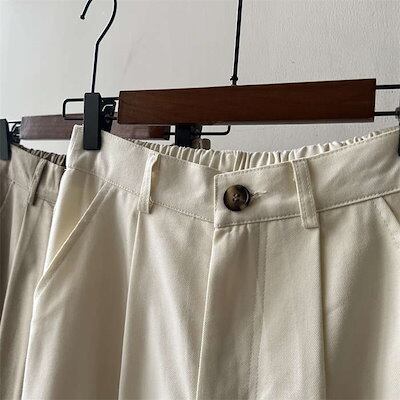 2024新作 ワイドパンツ パンツ レディース カーゴパンツ 春 夏 秋 ポケット コットン チノパン ボトムス ロング ズボン カジュアル ストレート 抜け感 ウエストゴム コットン 無地 体型カバ