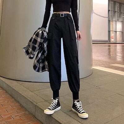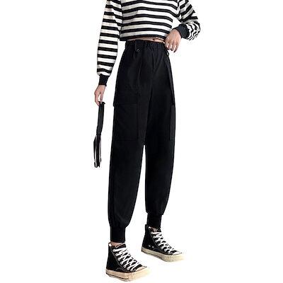 メガ割 ドローストリングワークパンツ レディースゆったり春秋2024新作万能薄手潮黒カジュアルスウェットパンツ