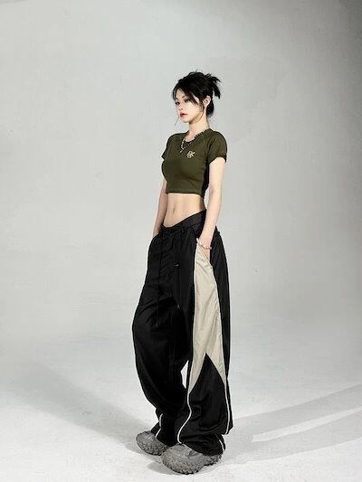 レディース ミリタリーパンツ ワイドパンツ ハイウエスト ダンス衣装 カーゴパンツ カジュアル ハイウエスト スラックス 切り替え ストレートパンツ ドレープ感 ワイドパンツ ゆったり