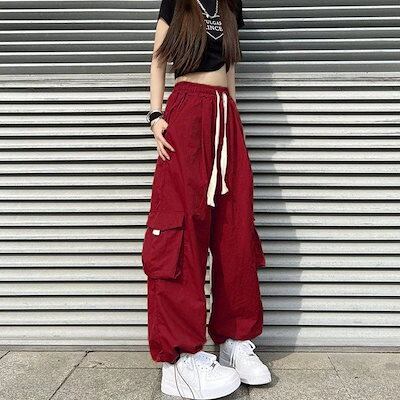 アメリカ レディース ミリタリーパンツ ワイドパンツ ハイウエスト ダンス衣装 純綿 ロングパンツ デザインセンス ルーズワイドレッグパンツ カーゴパンツ レディー 流行り