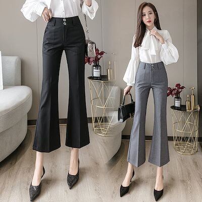 パンツスーツ グレー スーツパンツ レディス 秋 9分丈 フレアパンツ ニュースタイル 薄手