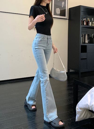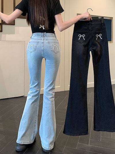 2024秋 パンツ デニム ジーンズ ロング丈 ハイウエスト 美脚効果 脚長効果 細見え ウォッシュ加工 冬 春 おしゃれ かわいい 韓国ファッション系 お出かけ