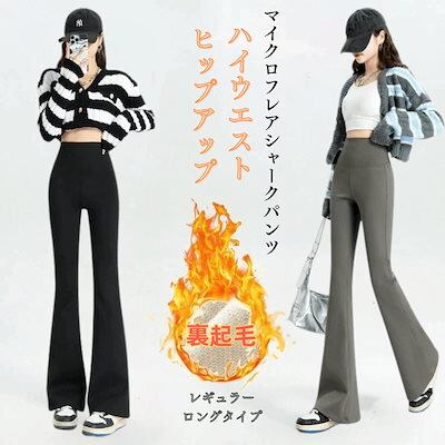 秋冬上品 裏起毛 マイクロフレアシャークパンツ スリミング 裏起毛レギンス ハイウエスト ヒップアップ スキニーパンツ 裏起毛パンツ レディース 冬 レギンス