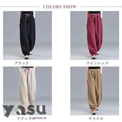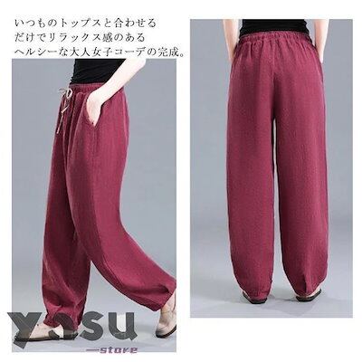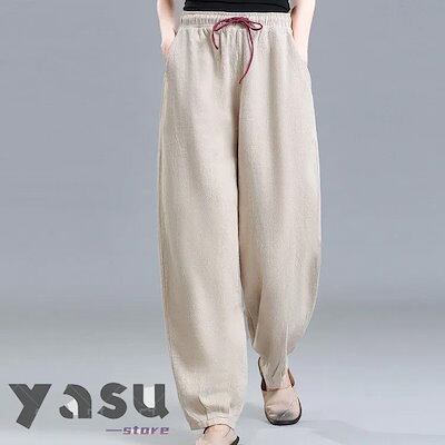 【Primepic】【急速出荷】綿麻 バルーンパンツ レディース コットンリネン サルエルパンツ ワイドパンツ 綿 リネンパンツ ロングパンツ 長ズボン ウエストゴム