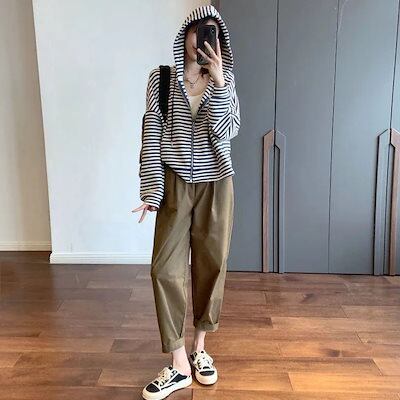 速攻美脚!!テーパードパンツ 無地 ハイウエスト ポケット 24との痩せ見え立体裁断ゆるウエスト大根パンツ ロングパンツ レディース