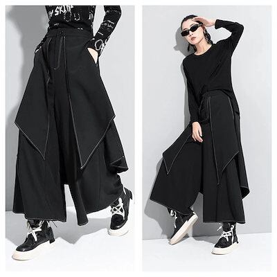 YMTワイドパンツ レディース サルエルパンツ 2タイプ おしゃれ ロングパンツ ゴム ハイウエスト キュロットスカート メガ割