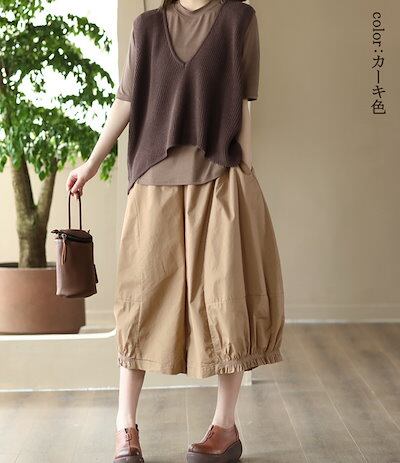 スカーチョ ワイドパンツ バルーンパンツ コットン ロングパンツ 無地 きれいめ 綿 リネン スカンツ 大きいサイズ カジュアル風 ハイウエスト 春夏 レディース 春 ロングパンツ ガウチョパンツ ゆ