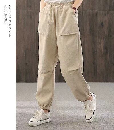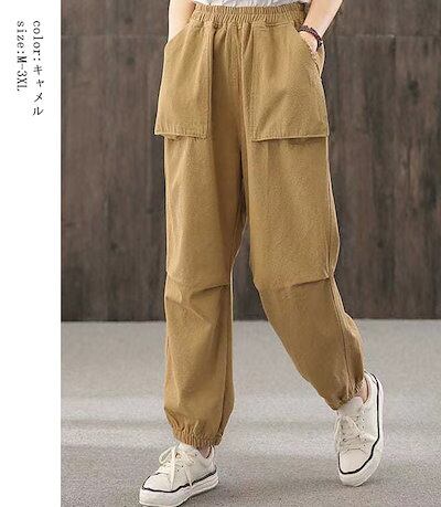 男女兼用 バルーンパンツ ボトムス クール チノパンツ お洒落 ズボン レディース 作業風 ビッグポケット 女性用 春夏 ゆったり カジュアル ゴム 大きいサイズ 綿混 膝タック ロング セミワイド