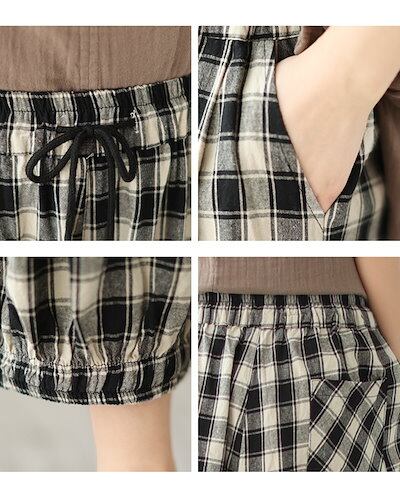 薄手 ゆったり 春夏 九分丈 アンクルパンツ 部屋着 リネン チェック レディース イージーパンツ テーパード ウェスト紐 チェックパンツ パンツ 可愛い ギンガムチェック 総ゴム ポケットサルエルパ