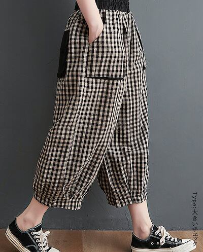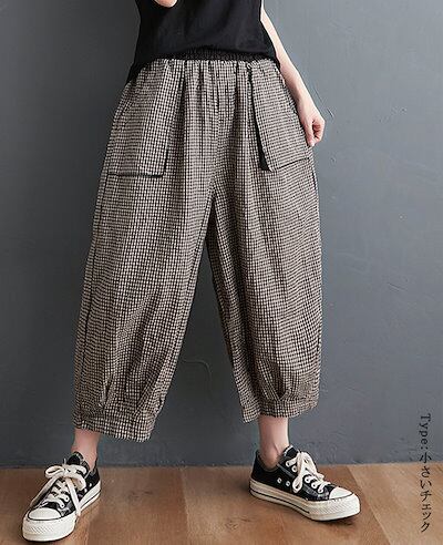 部屋着 コクーン 柄 バルーン レディース サルエルパンツ 低身長 サーカスパンツ 大きいサイズ 速乾 おしゃれ ゆったり チェックパンツ 体型カバー イージーパンツ 夏 きれいめ 七分丈 ゴム パン